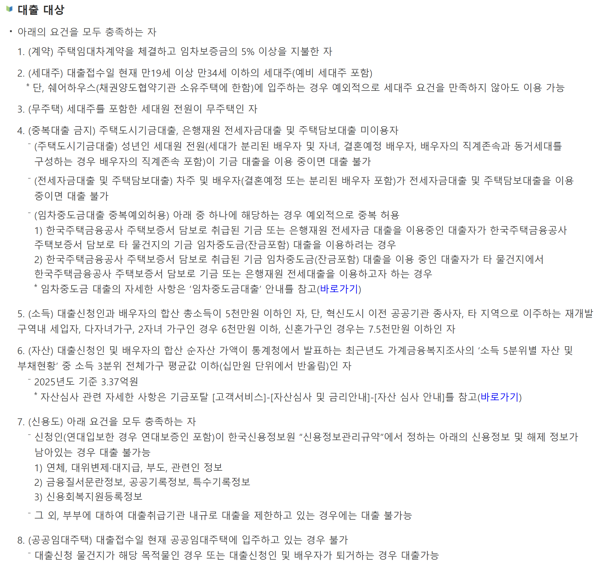 명시된 대출대상은 총 8개로 전부 충족시켜야 가능하다고 나와있습니다.