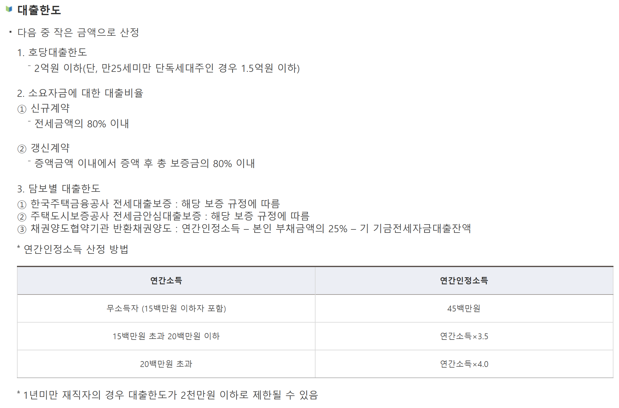 대출 한도는 총 2억원이내로 임차보증금의 80%이내 입니다.