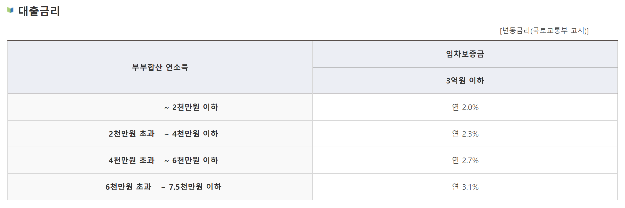 기본적인 대출 금리는 사진과 같이 연소득에 따라 연 2.0% ~ 3.1% 까지 나뉘어집니다.