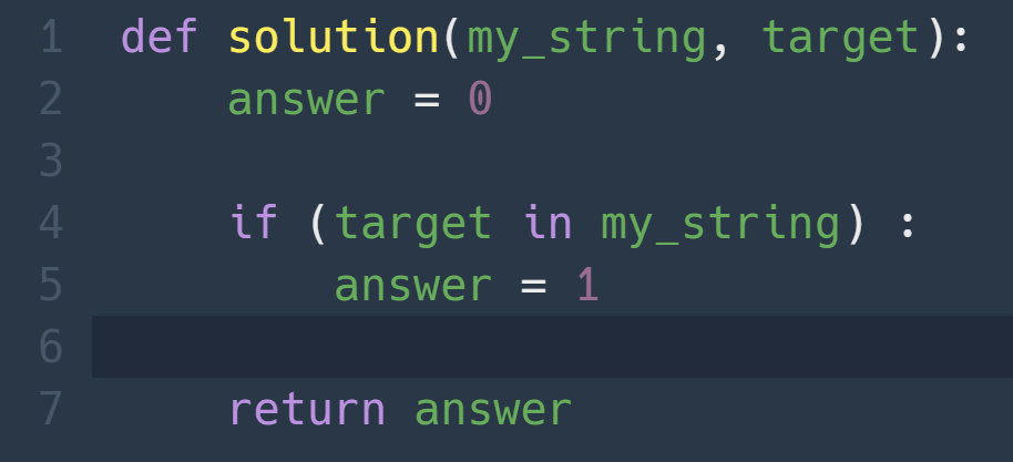 4번 라인 : target이 my_string 안에 존재합니까? 라는 질문입니다.