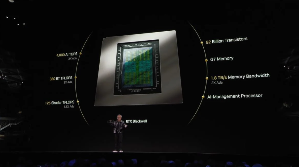 10,496개의 CUDA 코어, 1,824개의 AI TOPS, 24GB의 GDDR7 메모리가